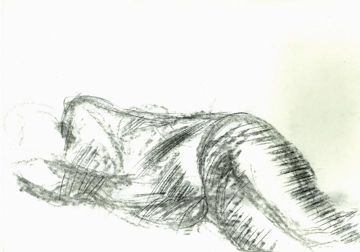 "Dans l’atelier, le modèle posé" Le dormeur 2 fusains sur papier