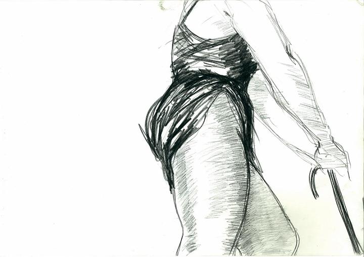"Dans l’atelier, le modèle posé" Janine Mine de plomb et crayon sur papier