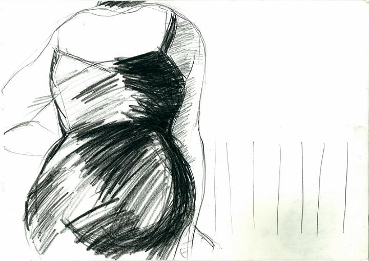 "Dans l’atelier, le modèle posé" Postérieur Mine de plomb et crayon sur papier
