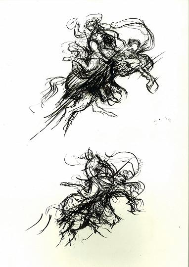 D’après Poussin, encre sépia, encre noire, crayon sur papier