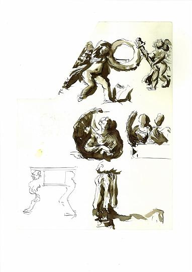 D’après Poussin, encre sépia, encre noire, crayon sur papier