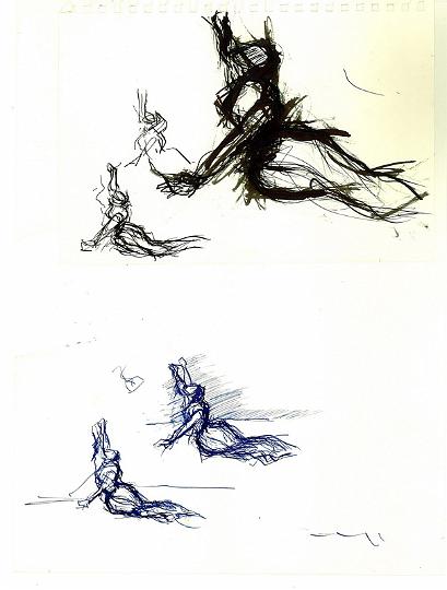 D’après Fragonard, encre sépia, encre noire, crayon sur papier